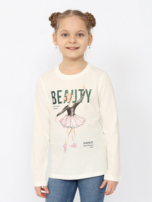 Джемпер для девочки с длинными рукавами. Горловина круглая, обработана притачной бейкой. На полочке деворативная шелкография.