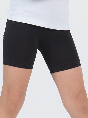 Гимнастический купальник слитный с шортиками, с коротким рукавом. Вырез горловины окантован бейкой из основного полотна.