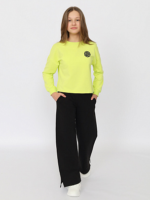 Стильный костюм оверсайз (свободный крой) состоит из 2-х предметов: укороченный свитшот и брюки-палаццо. Свитшот декорирован ярким объемным пафф-принтом "Свободный художник". Брюки-палаццо с завышенной талией и расклешенные снизу. Элементы костюма можно носить как самостоятельные вещи.