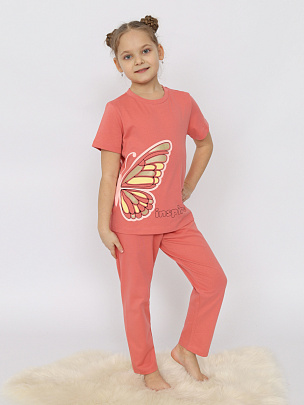 Пижама для девочки (футболка, брюки) коралловая