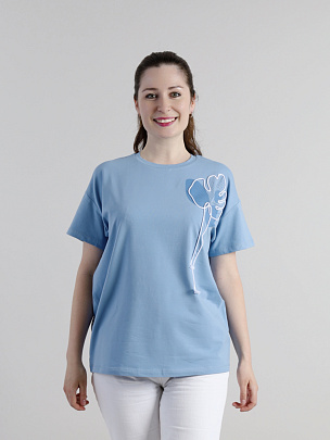 Футболка прямого силуэта длиной по линию бедер. Короткий рукав. Круглая горловина обработана узкой притачной обтачкой из рибаны с эластаном. Полочка декорирована вышивкой "никогда не переставай мечтать".