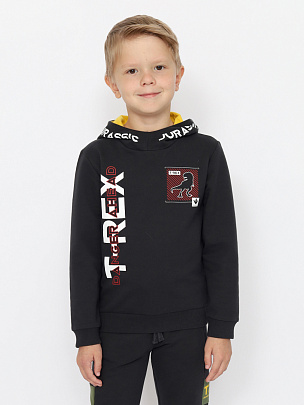 Джемпер с длинными рукавами, притачным поясом и манжетами. Рукав-реглан, отрезной, нижняя часть рукава декорирована принтом "Киберпространство".