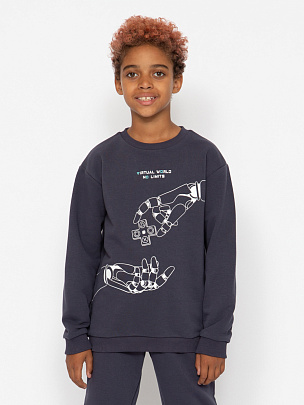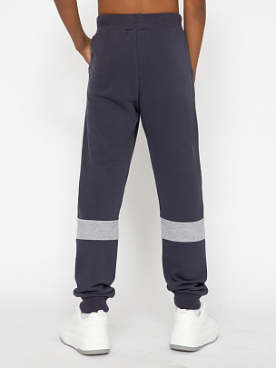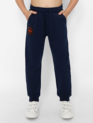 Брюки для мальчика со смещенными боковыми швами и карманами в боковых швах. По низу брюк эластичные манжеты. Пояс притачной с резинкой и функциональным шнуром. Сзади брюки декорированы принтом "Будь не таким как все и покоришь новые вершины".