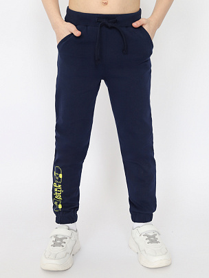 Брюки для мальчика с карманами в боковых швах. Пояс с функциональным шнурком, внизу на резинке.