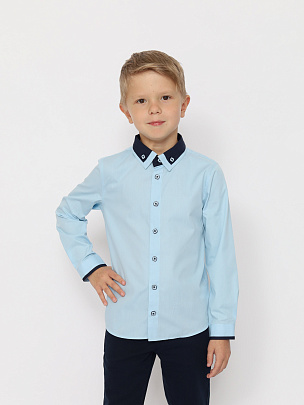 Рубашка классическая, полуприталенного силуэта, с длинным рукавом рубашечного покроя, с притачными манжетами, с застегивающейся шлицей рукава. Воротник обтачной с притачной стойкой. Планка оформлена декоративным кантом контрастного цвета.