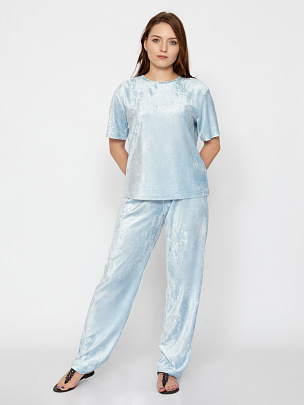 Идеальный вариант для отдыха, поездок и путешествий, для дома, улицы и дачи. Вы всегда будете выглядеть стильно и привлекательно! Костюм изготовлен из высококачественного бамбукового велюра. Футболка свободного силуэта с коротким рукавом, брюки прямые на мягкой резинке. Ткань переливается и меняет оттенок в зависимости от освещения.