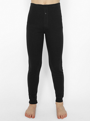 Кальсоны из интерлока в рубчик, без боковых швов. Спереди в шве обработан разрез. Пояс притачной, выполнен из рибаны с эластаном, с предварительно вставленной резиной. Нижние срезы обработаны притачными манжетами из рибаны с эластаном.